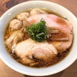 主なメニューは「中華そば」1,200円、「塩そば」1,200円、「煮干しそば」1,200円。麺は喉越しのよい、口当たりなめらかな細麺か、手もみを加えた食べ応えのある太麺を選べます。トッピングは燻香の良い豚バラチャーシューと豚肩ロースチャーシュー、板メンマ、細切り青ねぎ。おすすめの「特製中華そば」1,680円は、味玉とワンタン2個、チャーシュー1枚が追加された贅沢な一皿です。チャーシューは丹波赤どりのチャーシューか、豚内ももチャーシュー、好みの方をトッピング。名古屋コーチンなど3種の地鶏を使用し、9種の醤油をあわせた奥行きのあるスープは、うまみとコクがあふれおいしすぎると、感動の声が聞かれています。
