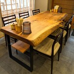 広く綺麗な店内は6人テーブルx2、カウンター7席の造り。
