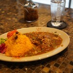 カレーはランチのハーフサイズのご飯付きカレーと、ご飯なしのおつまみスタイルのものがあるということでどちらもお願いしました。
