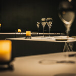 地下へ降りると1階のナチュラルな雰囲気とは打って変わってシックでハイセンスな「ristorante scintilla」がある。火花から立ち上がる細い薄煙をイメージしたブルーグレーの壁、ゆったりとしたテーブルの配置、美しく映る照明、隙がひとつもない完璧な空間なのになぜかとても居心地が良い。カウンターは日常使いに、奥にある8席までの個室は特別な日に利用したい。