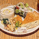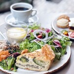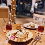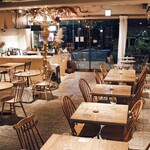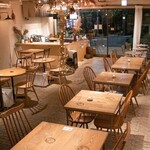 1階ではグリーンを愛でながらテラス、テーブル、カウンターで購入した店内の本、ワインとともに「trattoria in the GARDEN」の軽いつまみからメイン、デザートまでをアラカルトでいただける。