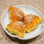 創作点心はどれも見た目にスタイリッシュで、味もさっぱり系でワインによく合う。海老の上にホタテをのせてとびこを飾った蒸し焼売、プルンと張りのある皮の中に弾ける海老の旨みを閉じ込めた海老蒸し餃子、揚げ湯葉と海老の腸粉(蒸して作るライスヌードルで、筒状に丸められている)はパリパリの揚げ湯葉の存在感が抜群でボリューミー。斬新なのに味わうとオーセンティック、そのバランスが面白い。