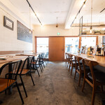 店内には、ゆったりと奥行きのあるローカウンターとテーブル席がある。木のぬくもり溢れる温かな雰囲気で、思わず長居したくなる居心地の良さだ。同店の空間コーディネートにはアパレル出身のオーナーの審美眼が生きている。