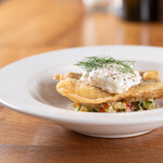 「タヤリン」とはトリュフの産地・イタリア北部ピエモンテ州の言葉で、「細切り」という意味を持つパスタのこと。古くからあるパスタで、昔ながらのレシピを参考に、シェフが店内で手打ちしている。本場のソースは、茹でたタヤリンにバターを絡めるだけというが、同店では日本人の口に合うようにバターと、イタリア料理ではポピュラーなグラナパダーノチーズで仕上げている。
