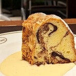 今回選んだ「フルーツロールケーキ」は、イチゴ、キウイ、黄桃、バナナなどを生クリームで包んで巻いたものでしたが、生地の内側にカスタードクリームの層があり、味わいに深みとコクを与えるという丁寧な仕事がなされていました。表参道散策で疲れたら、エスプレッソでひと休み。夏の日差しの中で、テラスで、道行く人を眺めながら、生ビールをちょっと一杯なんて使い方も粋ですね!