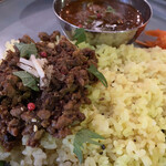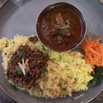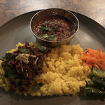 カシミールの辛さに、赤ワインに煮込んだ牛スジが加わることで甘みと深みが追加され、食べやすくなっています。野菜もトマト、レンコン、ブロッコリーなどが入ってバランスも良く、食べておいしく、健康にも良いカレー。相変わらずの絶品です!