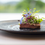 鶏肉や卵、野菜だけでなく、蜂蜜までもが自家農園で採れたばかりのもの。これ以上の鮮度はない最高の食材を、カジュアルなフレンチに仕上げる吉⽥シェフの腕前も確かです。「イル ギオットーネ 丸の内店 (IL GHIOTTONE)」をはじめ、札幌を代表するフレンチレストラン「ル・ミュゼ(Le Musee) 」や「シオ(SIO)」で培った技術を駆使し、FRWでは自社農園産「北海道の⼭わさび」にフォーカスしてコースを提供します。