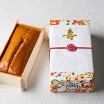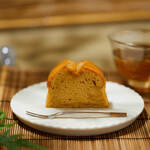 京都の名産・宇治抹茶を贅沢に使用した「抹茶の慶希」4,000円。蜜芋の自然な甘さが抹茶本来のほろ苦さをやさしく包み込む、しっとり濃厚な味わい。生地には、無添加有機黒糖で煮詰めた北海道産大納言小豆がたっぷり。さらに熊本産の渋皮栗をあしらい、秋を感じる一品に仕上げている。