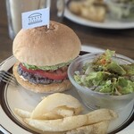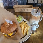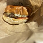 パティは130g。挽肉とチョップ肉が6:4の割で「プツプツ」とした噛みごたえあり。その上にフレッシュ野菜と特製オーロラソースがたっぷり。このソース、卵の風味が強めで生野菜との相性が抜群によく、結果として肉より野菜が目立つバーガーに仕上がっています。バンズは小倉台の名店「パン・フランキー」作。表面がザラッとしたソフトフランス地であっさりしているので、こちらも野菜との相性が好いパンと言えるでしょう。