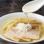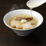鶏ガラ、もみじと水だけを10時間以上煮込み、旨味を凝縮させた濃厚白湯スープ。鶏の風味が口の中いっぱいに広がり、力強さの中にも優しさが溢れる味わいがやみつきになります。国産小麦を使用し1日寝かせて作る自家製中太ストレート麺は、スープとよく絡むモチモチの食感が人気です。