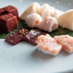 「ヒロ ナゴヤ」は、名古屋城のほとりにある高級焼肉店。完全予約会員制で一見の入店は難しい、プライベートレストランです。ある日のコースは、ユッケ風、生姜醤油で食べるシャトーブリアン、ラム、キャビアをのせたタン、シャトーブリアンの海苔巻き、トマト牛カレー、超高級牛丼……。ふらりと気軽に行けるお店ではないですが、人生で一度は食べてみたい、贅を尽くした肉のフルコースがそこにあります。