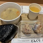お米はもちもちとした食感の大分産「ひのひかり」を使用。炊きたてのお米に具材と調味料を混ぜて、味をしっかりと染み込ませたら、一つずつ手作業でおにぎりに。2個入200円、3個入310円とお手頃価格にもかかわらず、ボリューミーなので満足感もばっちり◎。
