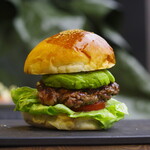 そこへアボカドを足したらどうなるか。肉が強いので負けてしまうのでは? と案じましたが、心配ありません。メキシコ産のハス種のアボカドを2分の1個のせているので、しっかりと存在感があります。コショウの風味と塩気をほんのりまとったパティを、チーズが膜を張るように薄ーくコーティング。そこへアボカドがマイルドにのって、これまたナチュラルな味付け。アンガス牛の肉の旨味とチーズの絡みを中心にお楽しみください。