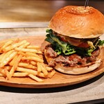 バーガーメニューは「COWMAN BURGER」たった1品。あとはトッピングで……というシンプルな構成です。パティはサイズ120g。中に少量の塩。焼く際に砕いた黒コショウをパラッとひと振り。ヒール(下バンズ)にハニーマスタード。野菜はトマトとレタス、バンズはクラシカルな天然酵母バンズ――。