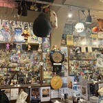 所狭しとフィギュアや昭和のレコード・ポスターなどが陳列された「うどん屋らしくない」店内もまた、やしまの特徴。
