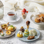 年末年始のお祝いムードを彷彿とさせる、華やかなスイーツ8種類とセイボリー6種類がセットになった「フェスティブアフタヌーンティー」(3,500円)。