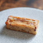 「いちじく&くるみ」は、いちじくと長野県産のくるみのミルクチョコレートのガナッシュ(チョコレートクリーム)をビターチョコレートでコーティング。表面にはブルガリのロゴと金箔が施され、ゴージャスに仕上げられている。