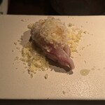 「傳」の料理長・長谷川在佑さんと「フロリレージュ」のシェフ・川手寛康さんがタッグを組んで、新たな業態のレストランを生み出した。それなのに料理はフレンチでも和食でもないというか、新ジャンルの串料理を提供。食べるたびに発見がうれしい! 流行らないわけがない。