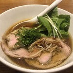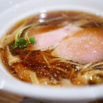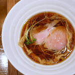 看板メニューの「塩ラーメン」はイタリアンバルらしくスープのベースを生ハムで取っています。麺は老舗の中華店「希須林」監修のパスタ用の小麦粉をブレンドした歯ごたえのある麺。