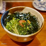 つまみは上写真の新鮮でプリップリな生モツをうどんだしで煮込んだ“うどん屋のもつ煮”こと、「白もつだし煮込み(500円)」や、「ピリ辛山くらげ(300円)」「ペッパーとり天(300円)」など常時8〜10種類ほど。つまみサイズとはいえ、これだけおいしくてほとんどが300〜500円という価格にびっくりです。