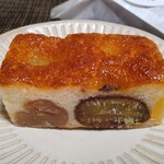発酵バターとアーモンドプードルを使用した生地は、ブランデーが香り、しっとりとした食感で旨味たっぷり。中にたっぷりと加えられた大ぶりの栗は、柔らかでしっかりとした甘さ。