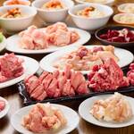 さらに「黒毛和牛のたれ焼肉盛り合わせ」が怒涛の如く登場。タレにまみれたそれは、リブロースやリブロースのかぶり、そしてマキなどリブロース周辺の霜降り肉が中心。ちなみにマキとは、リブロース芯に巻き付くように付いている肉で、牛一頭で1.5kgほどしか取れない稀少部位だ。これらも、もちろんおかわり自由。