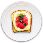 そのほか、ヴァローナチョコレートのカカオパウダーを練り込んだ「自家焙煎コーヒー食パン」(324円)や、千葉県産ブルーベリーピューレと2種類の大きさのレーズンを使った「ブルーベリー香るたっぷりレーズン食パン」(1,080円)、クリームチーズ生食パンで作る「ふろまーじゅフルーツサンド いちご」(648円)など、全て店内工房で手作りしたパンを提供する。