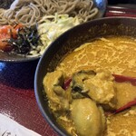シェフにお話を聞いてみると、趣味であるカレー食べ歩きの中でネパール料理のディド(そばがき的なもの)とカレーの相性の良さを知り、大阪の人気店でカレーの手ほどきを受けてご自分のお店でもこのスタイルのカレーそばを出すようになったそうです。
