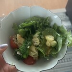 今回登場した新メニューのサラダ「Chili KA-RU-BI(チリ・カルビ/フェイクミート)」1,350円には、レタス、ベビーリーフ、ブロッコリー、トマト、ヤングコーンとともに、NEXTカルビを使用。そこに韓国風のピリ辛ドレッシングをかけて食べるヴィーガンサラダとなっている。