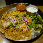 ビリヤニは、肉や野菜などの具をスパイスと一緒に炊き込んだ炊き込みご飯。おもにインドやその周辺国で食べられています。
