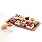 「いちごのアフタヌーンティー」は、リボンの付いたかわいい2段のティースタンドに「生ハム」や「パニーニ」の他、「いちごのムース」「いちごサンド」「いちごパイ」など、いちごのスイーツが盛りだくさん。コーヒー、紅茶、コーラなどソフトドリンクをお代わり自由で楽しめます。