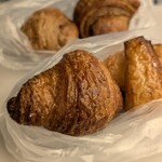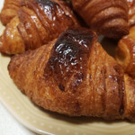 一番人気はやはり、棒状のチョコレートを生地に巻き込んで焼き上げた「チョコクロワッサン」100g 約4個194円。店頭での焼きたてはもちろん冷めてもおいしいのが特徴ですが、温めなおすとサクサク感やモッチリ感がよみがえるのでおすすめ。とろんと溶けたチョコレートが生地に絡んでおいしさ倍増です。