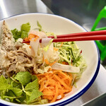 ボブンとは、米麺をナンプラーやスイートチリを使用したソースで和えて、ミントやパクチーなどの野菜、ベトナム揚げ春巻きのネム、甘辛く味付けした牛肉をトッピングした、フランス発祥のアジアンヌードル。