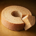 「AnniBAUM」は、“パン屋のように気軽に立ち寄れる店”をコンセプトに掲げるバウムクーヘン専門店。こちらで外せないのが、2019年春に開催されたバウムクーヘン博覧会で連日完売するほどの人気を誇る、看板商品の「CakeBAUM クレームブリュレ」(486円)。