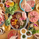 ディナーは、参鶏湯350gにKINTANの和牛のお出汁、サーロイン・ユッケ ハーフ&ハーフ、プラチナポークのKINTAN餃子、岩手県産 岩中豚バラ20gと肩ロース40g、チャンジャ、カクテキ、韓国のり、入ルのオリジナル海苔佃煮、しゃぶしゃぶ用の野菜12種がセットになった贅沢な内容で提供している。