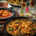 スペイン料理の定番「パエリア」は5種を用意。魚介のパエリアには、あさりや海老、真鯛などを中心とした魚介スープを使用。肉のパエリアには、国産牛すじや鶏ガラをじっくりと煮込み、ポルチーニや生ハムのコクを加えたコンソメスープを使用するなど、こだわりが随所に。