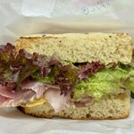 一番の特徴はなんと言ってもオリジナルのソース。ほどよい酸味のさっぱりとした味わいが特徴で、千切りレタスによく馴染み、サラダ感覚で味わえます。+100円で、ピクルスやブルーチーズ、バジルソースのトッピングもでき、自分好みにアレンジもOK。ハマると時々食べたくなる、やみつきのサンドです。