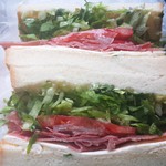 前身の店のオーナーがロンドンでイスラム系の人に習ったという、パストラミサンドが人気の「サンドイッチ研究所」。好みの具材を選ぶと、デフォルトで千切りレタス、トマト、玉ねぎ、クリームチーズがたっぷり入ったサンドイッチが味わえます。