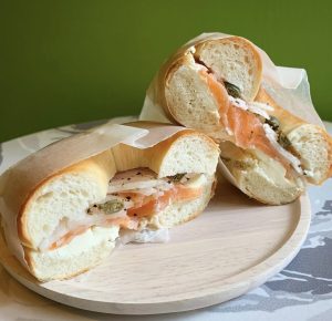 なかでもひのさんの一番お気に入りは、プレーンベーグルにゴマ、ポピーシード、玉ねぎ、にんにく、岩塩が付いている「エブリシング」。「一つのベーグルでいろんな味や食感を楽しめて、最後まで飽きずに食べられますし、ベーグルのトッピングと、挟む具材との組み合わせを考えながら選ぶのも楽しいんですよね」