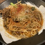 厳選した2種類のゴマを炒って作る香り高く濃厚な風味とコクのある自家製芝麻醤、秘伝のかえし、豚骨と鶏ときのこの出汁でつくる贅沢なWスープに、5種類の唐辛子を2日間煮出して作る自家製ラー油をたっぷりとかけた一品だ。