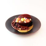 「アップルポップ」(1,760円)は、お祭りを彷彿させるりんご飴をイメージした夏のデザート。カモミール風味のリンゴのコンポートにホワイトチョコレートのクリームを詰めて、パリパリの飴をトッピング。ココナッツアイスとライムのメレンゲを合わせた冷たいパウダーを添えて、涼しげな雰囲気に仕上げている。
