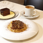2段目はマンゴー風味のレアチーズケーキやゼリーをのせた「スイーツプレート」、3段目はサンドイッチやキッシュなどの「セイボリー」と、バラエティに富んだ内容に。