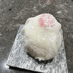 ゲランドの塩を使用した、さっぱりとした味わいのレアチーズと、口当たりなめらかな小倉餡を組み合わせ、しっとりモチモチに焼き上げた竹炭入りの生地でサンドしている。