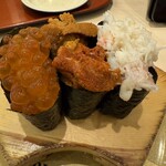 「名物のネタは、色鮮やかなスジコを軍艦でなくシャリにそのままのせる『紅鮭すじこ醤油漬け』など、やはり北海道ならではの一皿です。夏の時季なら、白サーモンと呼ばれる国産のオオスケとか。冬ならタラバガニのふんどしにコマイなど、旬のネタも必食です。ぜひお椀と一緒に、北海道の味覚を満喫しましょう」