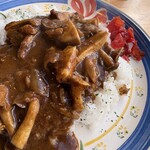 カレーは2種盛りにもできるので、「牛すじカレーとキーマカレーの2種盛り」1,500円をいただいてみれば、牛すじがとにかく奥深いうま味で非常においしく、キーマは鶏と豚の挽肉使用で軽やかな仕上がり。相性の良い2種盛りとなりました。
