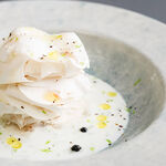 「GIGAマッシュステーキのおいしさの秘訣は火の入れ方です。大きさや厚みに合わせて200〜235度の間で温度を管理し、低温で休ませるなどして素材の水分を引き出しています」と語るのは桜井順一シェフ。「この一皿だけで500g近くありますが、それでも50kcal程度。食物繊維をはじめ体に良い栄養素が詰まっていますから、実際にコースを食べた翌日からお腹が快調になったという方も多いんですよ」と教えてくれました。