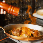 Grand Maison ORENOのスペシャリテは、ツヤのあるクラシカルな赤ワインのソースやカットした断面の美しさが魅力的な「鹿フィレ肉とフォアグラのアン・クルート グラン・メゾン風」。柔らかくシルキーな味わいの鹿のフィレ肉をベースに全部位を活用し、フォアグラと合わせてパイ生地で香ばしく包み焼き上げた一品だ。