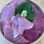 「天然鮪丸ごと丼」は、とろ・赤身・すき身まぐろの3つの部位のおいしさが楽しめます。