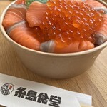 『厚めの海鮮が乘ってて北伊醤油の醤油と胡麻ダレが用意されていました。甘めのお醤油でした。海を見ながら海鮮丼、美味しかったですー』(えびちゅうさん)