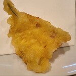 続いては、通常の天ぷら店ではあまり見かけないであろう「ソフトシェルクラブ」です。こちらはアメリカ東海岸で取れるガザミの一種。脱皮してすぐのため殻がとても柔らかく、丸かじりしても口の中が痛くない! それどころか、旨みや香ばしさがより濃く感じられて美味。